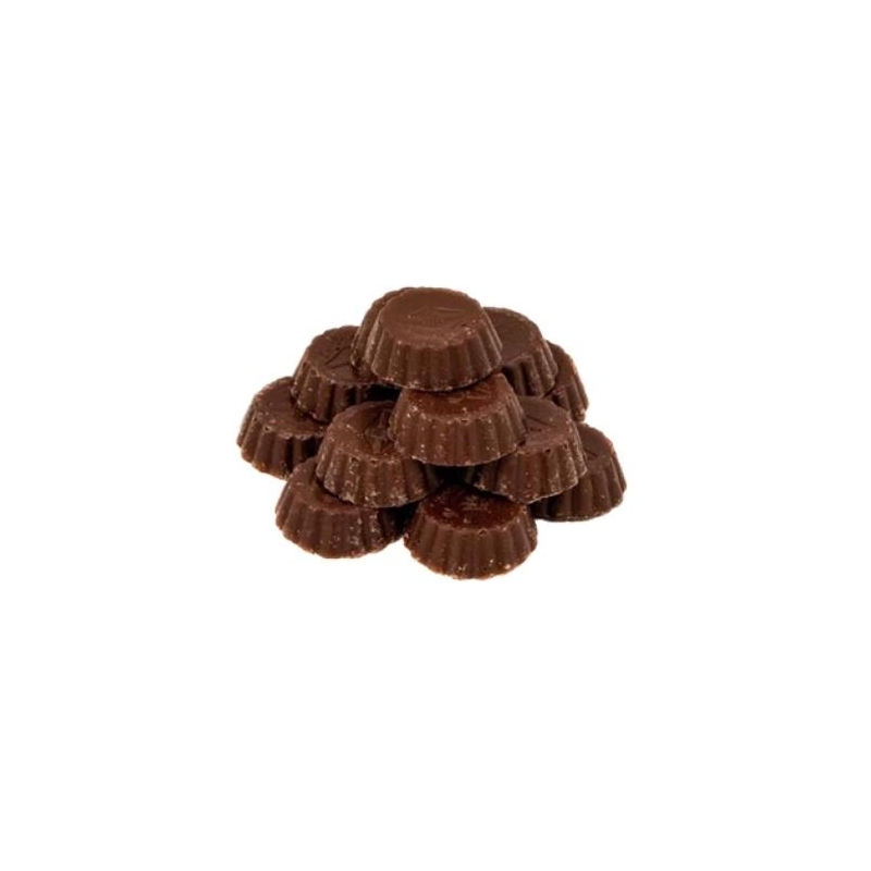 Ingredients: Sweet chocolate flavor, sugar, hydrogenated vegetable oil, cocoa, ground biscuit, gluten, milk, soy, yellow 5. May contain: peanuts, almonds.