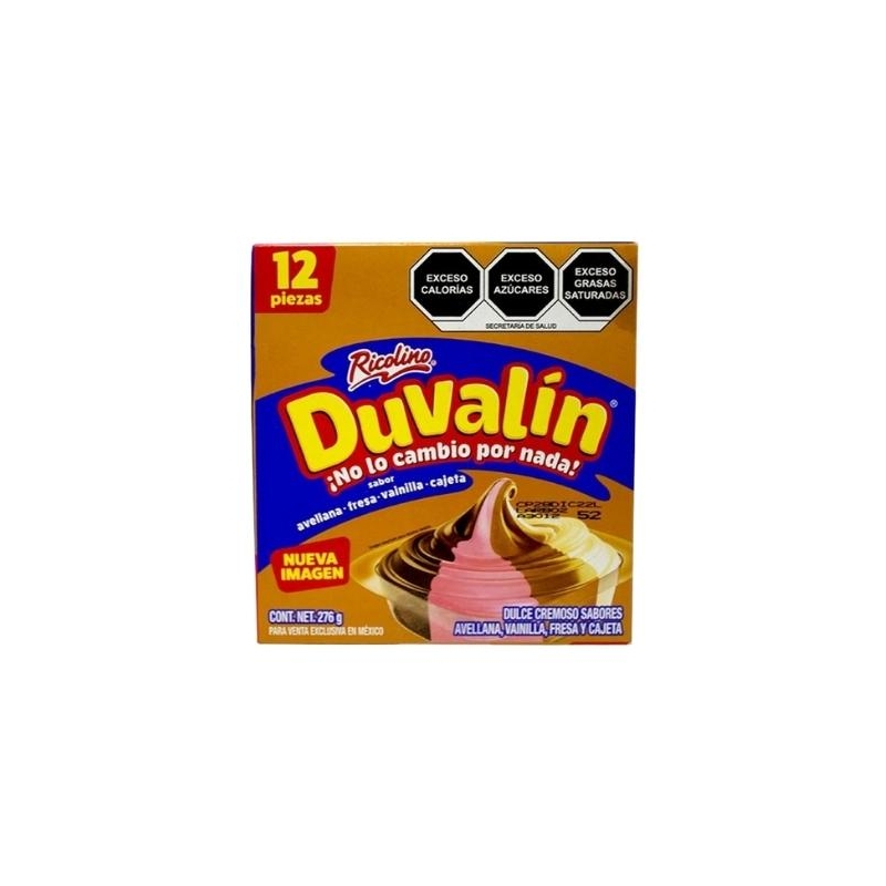 Ricolino Duvalin sabor avellana-fresa-vainilla-cajeta c/12Pzas