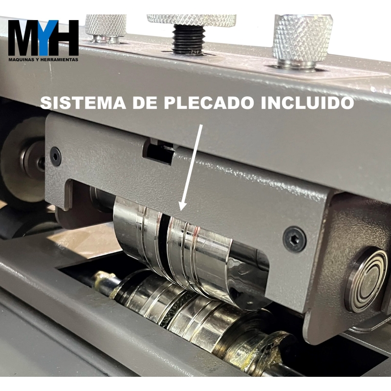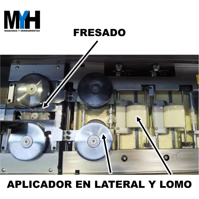 Sistema de plecado incluido, ajuste de grosor y ancho, con los discos de acabado de “caja de libro”.