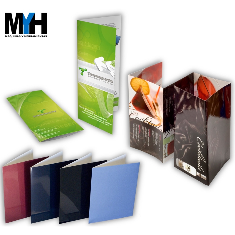 Para archivos, tarjetas, fotos, invitaciones, menús, carpetas, acabado de impresión, cubiertas de alto brillo, cubiertas de libros, tapas duras, folletos, etc.