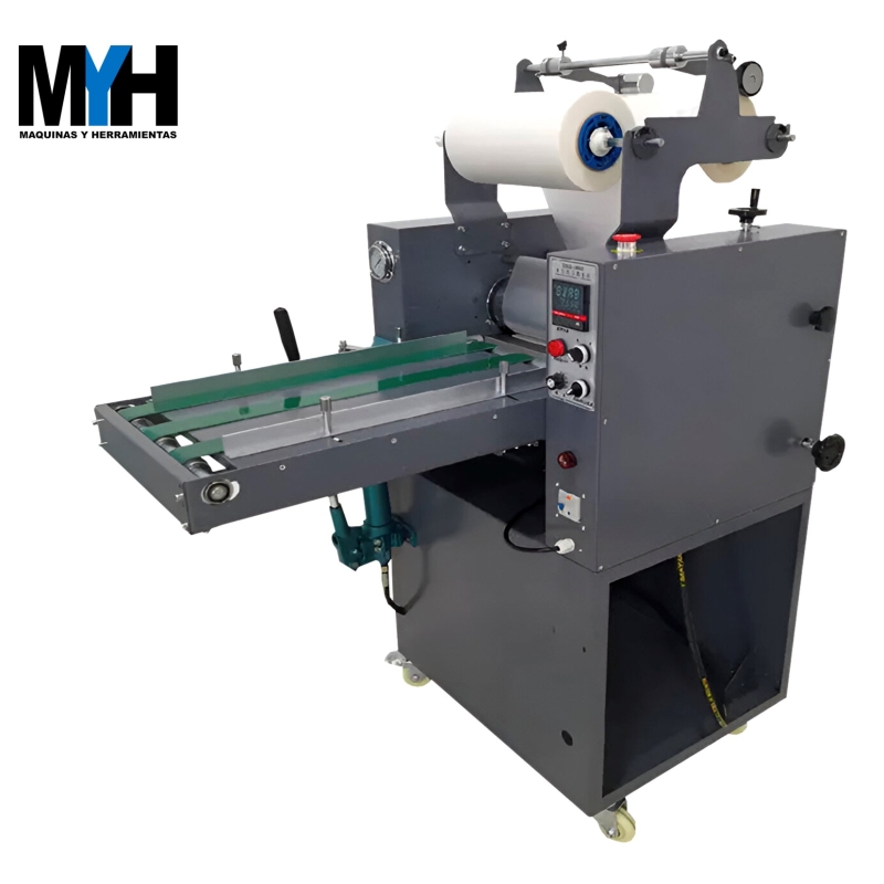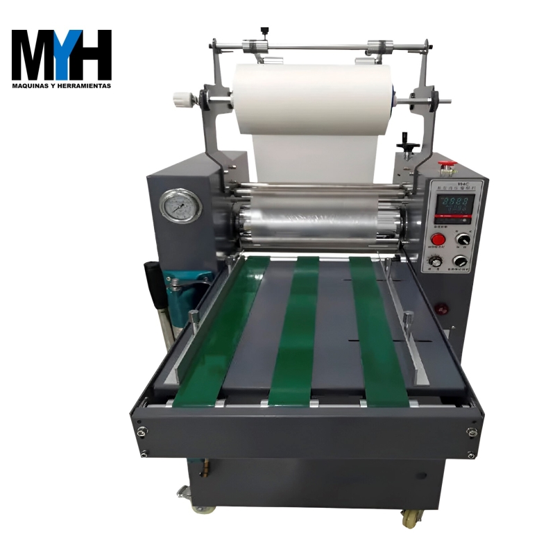 La cinta transportadora sincroniza la alimentación automática del papel, cuando el sustrato a laminar es delgado puede pasar por el sistema de “rebobinado”.
