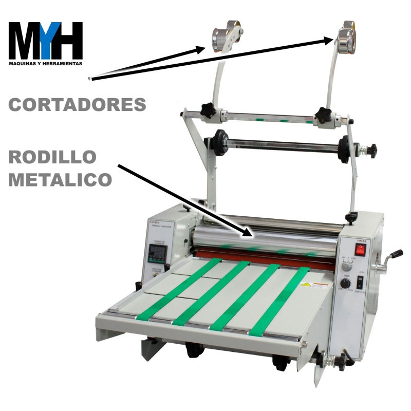 - Rodillo inferior calefactor de goma, para hacer presión sobre el metálico sin dañar los sustratos a laminar.