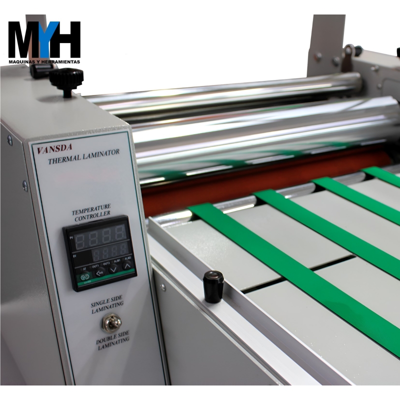 Por su rodillo calefactor metálico a base de resistencia, la temperatura es más estable, lo que permite trabajar a velocidades más rápidas que las laminadoras de rodillos de goma.