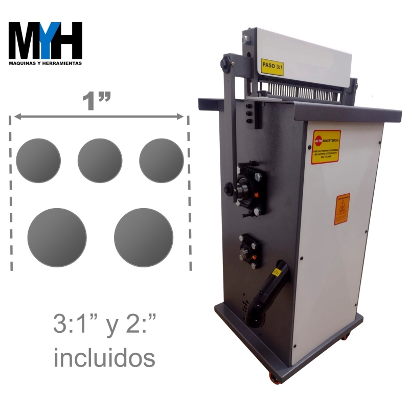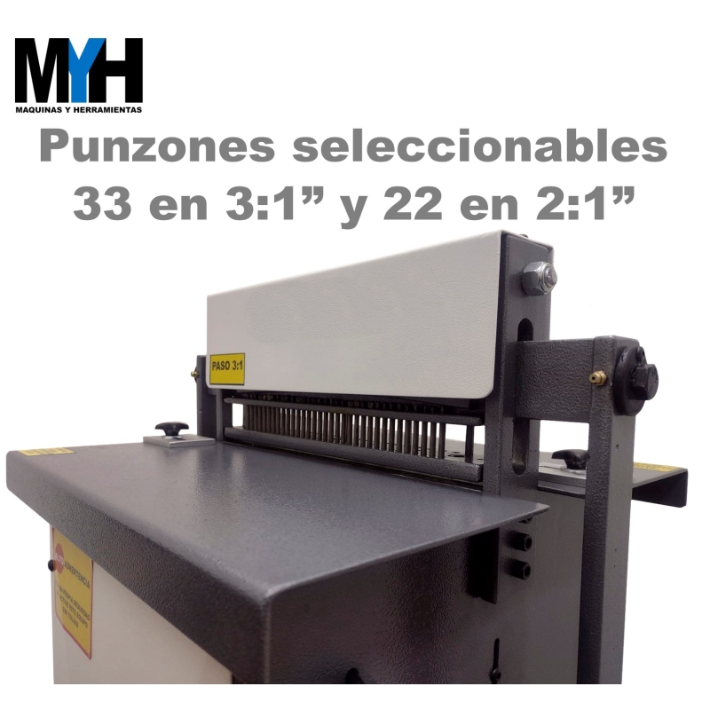 De un lado hace las perforaciones paso 3:1” (33) y del otro las de 2:1” (22) la selección de punzones es muy sencilla