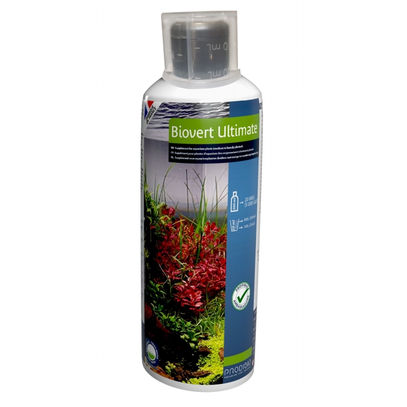BIOVERT ULTIMATE es un complemento de crecimiento para plantas acuáticas. Está destinado a acuarios de plantas medianas a altas con una pequeña población de peces.