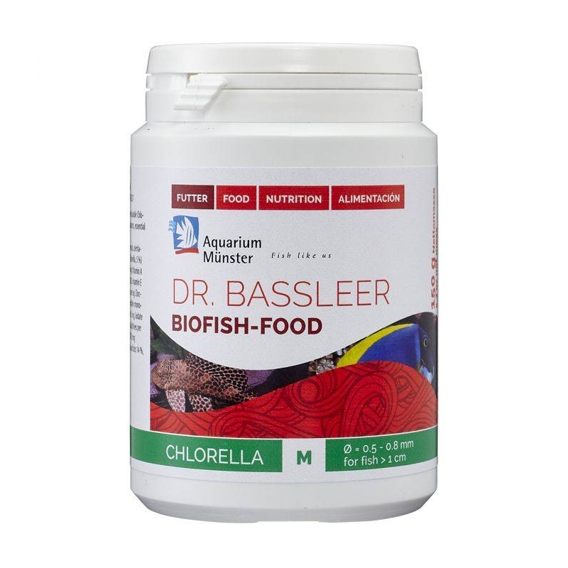 DR BLASSLEER BIOFISH FOOD CHLORELLA además de contener todos los elementos naturales necesarios para una alimentación equilibrada, contiene también las propiedades del alga de agua dulce: CHLORELLA, alga abundante en cartinoides, antioxidantes, ácidos grasos instaurados esenciales, vitaminas y oligoelementos.