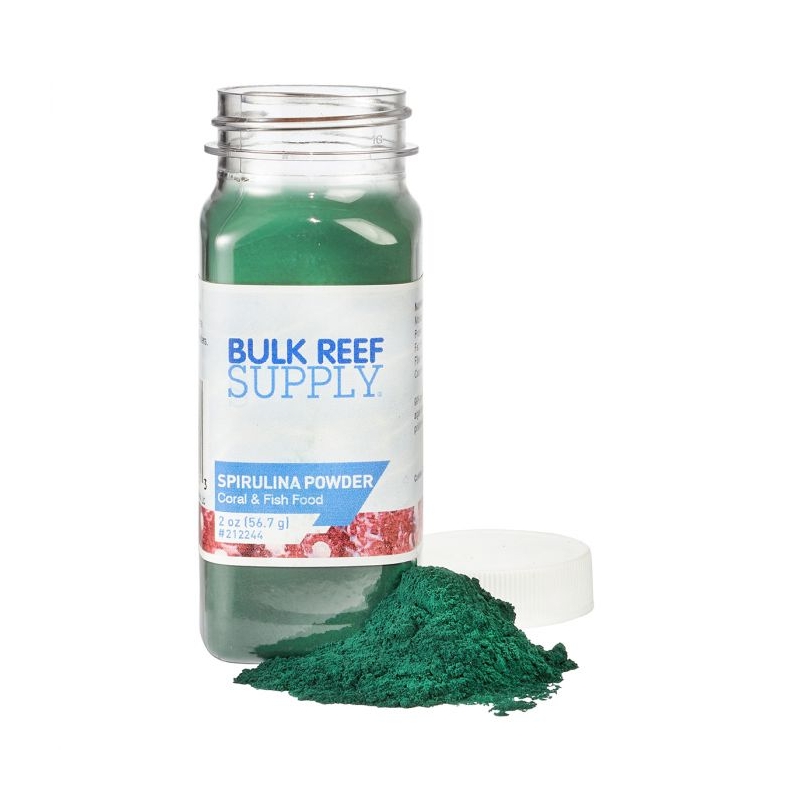 La espirulina en polvo se puede utilizar como alimento flotante para invertebrados, corales, artemia, larvas de camarón y larvas de peces. También se puede agregar a cualquier alimento húmedo para peces para ayudar a aumentar los niveles nutricionales como aminoácidos, carotenoides, vitaminas y minerales.