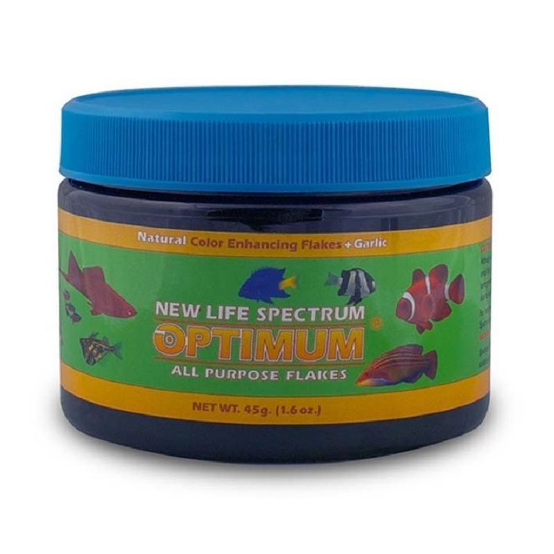 New Life Spectrum Optimum All Purpose Flakes es ideal para una variedad de peces de agua salada y agua dulce,utiliza ingredientes naturales de primera calidad. Este alimento para peces está hecho de krill del sur de la Antártida, arenque, calamar y proteína de mejillón de Nueva Zelanda. Estos ingredientes junto con otros ingredientes naturales que mejoran el color ofrecen una dieta equilibrada a los peces. También mejora el sistema inmunológico y hace que el color de los peces sea más vívido. Otros ingredientes como algas marinas, algas marinas y Haematococcus pluvialis (microalgas), espirulina natural de primer grado, así como un extracto de frutas y verduras ofrecen un equilibrio perfecto de nutrientes esenciales y micro a sus peces de agua dulce. El ajo y la fórmula Thera-A que contienen una megadosis de ingrediente antiparasitario natural también se incluyen en esta harina de pescado. Características: Variedad ideal de peces de agua dulce Ingredientes naturales que mejoran el color. Equilibrados nutrientes esenciales y micro. Incluye ajo y fórmula Thera-A Mega-dosis de ingrediente antiparasitario natural. Mejora el sistema inmunológico.
