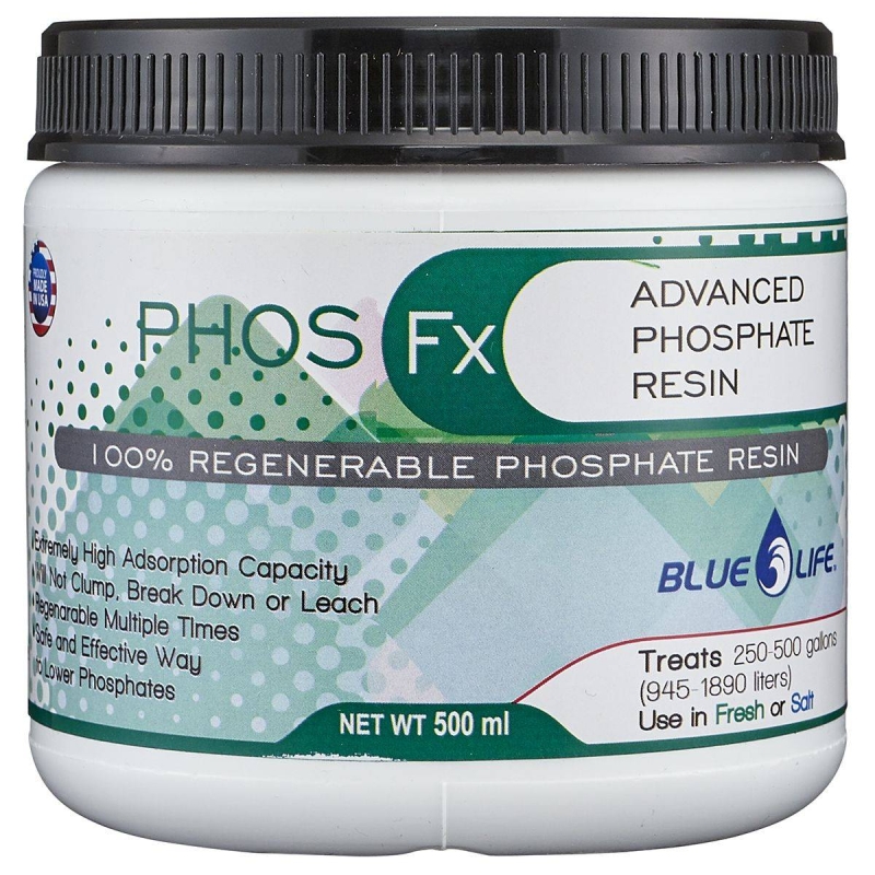 Qué hace: Phos Fx consiste en perlas de resina polimérica porosa infundidas con óxido de hierro. El óxido de hierro se une con el fosfato y el silicato a medida que el agua pasa sobre las perlas. El control de fosfato y silicato es importante en acuarios de agua dulce, marinos y de arrecife para el control de algas. Limitar el fosfato y el silicato ayuda a matar de hambre a las algas y reducir el mantenimiento. El fosfato también se une con el calcio y puede inhibir la calcificación en los corales. Las cuentas porosas eliminan los problemas de descomposición y polvo que a menudo se encuentran con GFO. Las cuentas esféricas son especialmente efectivas cuando se usan en una cámara de contacto. Las perlas uniformes ayudan a garantizar el máximo tiempo de contacto y la eliminación de nutrientes. Phos Fx se puede regenerar varias veces con Regen Fx.