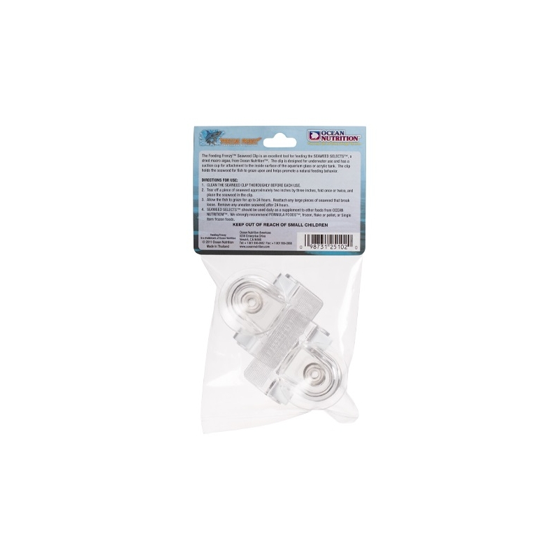 Para que los peces que pastan en algas marinas prosperen en su acuario, la comida debe estar fácilmente disponible, lo que les permite recogerla, poco a poco, durante un período prolongado de tiempo. Los clips de algas marinas Feeding Frenzy de Ocean Nutrition mantienen las algas marinas bajo el agua. Tienen una superficie de agarre larga y fuerte para sujetar de forma segura las algas marinas y una ventosa que les permite fijarse fácilmente a la superficie interior de los acuarios de acrílico o vidrio. Estos clips son ideales para alimentar a las Selecciones de Algas marinas con extracto de ajo, una macroalga seca, de Ocean Nutrition.