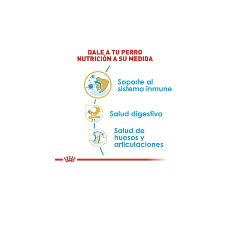La ingesta balanceada de energía y el contenido preciso de minerales (calcio y fósforo) contribuyen al desarrollo de huesos fuertes y articulaciones saludables en el cachorro Bulldog. Esta fórmula exclusiva también ayuda a mantener el peso ideal.