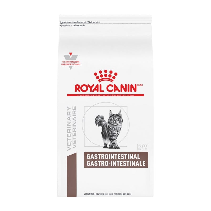 Alimento seco para gato con transtornos gastrointestinales, diarrea aguda y crónica, enfermedad intestinal inflamatoria (EII), mala digestión, mala absorción, colitis según estado clínico, convalecencia, sobrecrecimiento bacteriano, gastritis, enteritis y colitis.