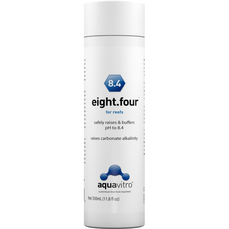 R: Si bien eight.four™ es ciertamente un medio muy seguro y efectivo para agregar alcalinidad, la sobredosis es posible con cualquier producto. eight.four™ se mezcla de tal manera que permite dosificar una cantidad significativa más que la dosis estándar sin sobrepasar el pH por encima de 8.4. Sin embargo, su alcalinidad aún puede ser exagerada causando problemas con el equilibrio iónico. Una sobredosis significativa de este producto podría causar un KH demasiado alto, lo que resultaría en problemas con el mantenimiento de otros parámetros, a saber, el calcio. Siempre es mejor probar su alcalinidad antes de agregar el producto y usarlo según sea necesario.