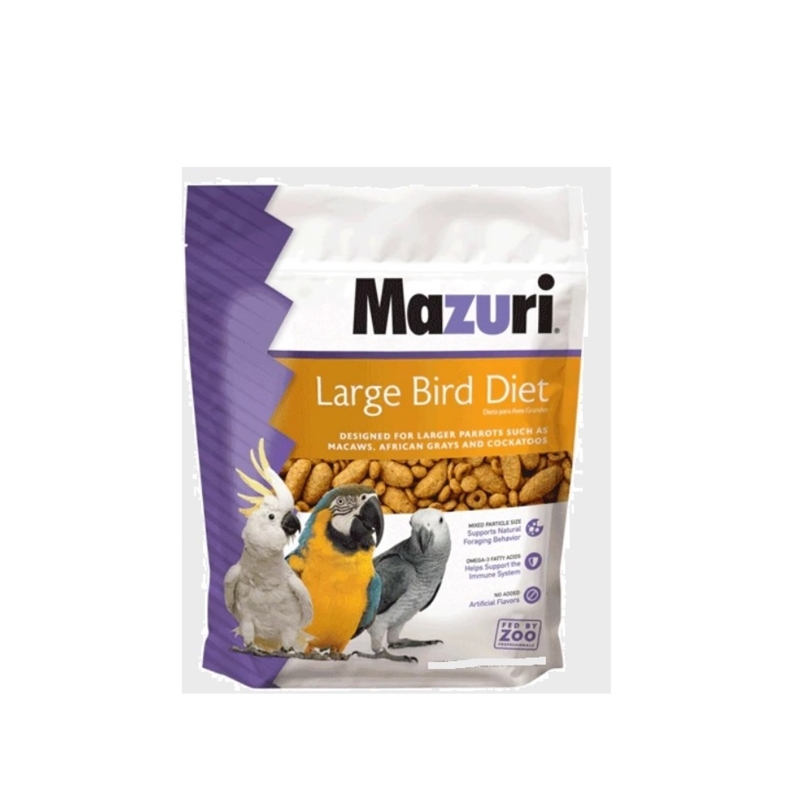 Mazuri® Large Bird Diet es un alimento completo para aves para psitácidas grandes. Este alimento de loro nutricionalmente completo, formulado en partículas de varios tamaños, se puede utilizar como la dieta principal para aves no reproductoras.