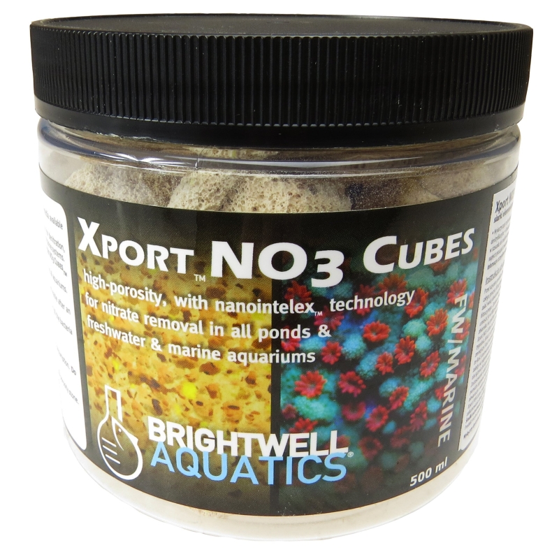Con el paso del tiempo, la tasa de desnitrificación aumenta. Los corales y otros invertebrados pueden reaccionar negativamente a la rápida eliminación de nitratos del agua. En este caso, reduzca la cantidad de medios filtrantes Xport NO3 Cubes en un 50% y continúe usándolo hasta que la concentración de nitrato en el agua caiga al nivel deseado.