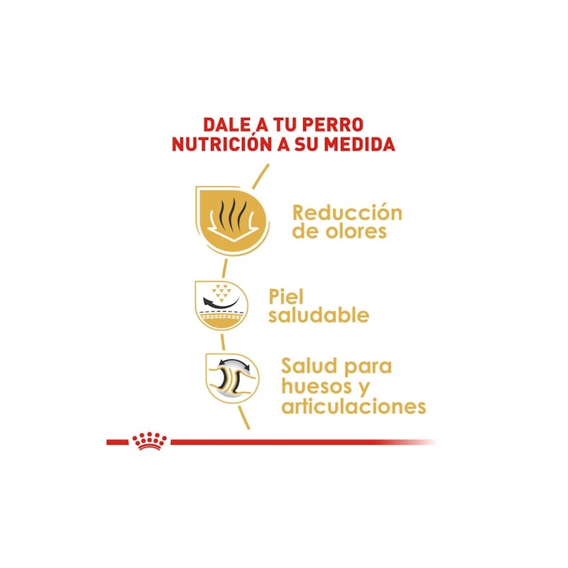 La nutrición desempeña un papel importante en el mantenimiento de la piel saludable que es un componente crítico para el bienestar general del Bulldog. La fórmula Bulldog Inglés Adulto ayuda a promover la función protectora de la piel gracias a un exclusivo complejo de nutrientes y a mantener la piel saludable (EPA y DHA).