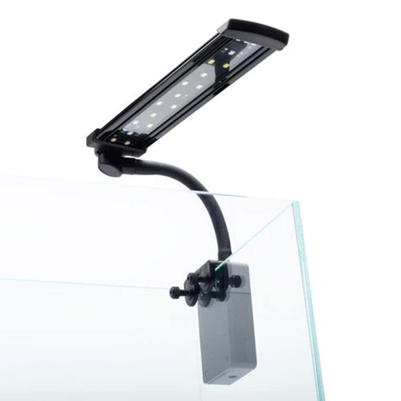 La luz LED de acuario plantado Dymax Flexz tiene un cuerpo increíblemente delgado, mide solo 5 mm, y cuenta con una base táctil inteligente y con clip que permite un fácil encendido y apagado, así como la capacidad de ajustar la temperatura de color entre todo azul, todo blanco o una combinación de ambos. El brazo flexible estilo cuello de cisne ofrece una gran capacidad de ajuste, lo que le permite ajustar la altura y el ángulo de la luz LED. Además, la función giratoria hace que limpiar su acuario sea muy fácil. Esta luz LED de acuario nano-montura contemporánea y elegante está disponible en tres modelos, Flexz 3, Flexz 5 y Flexz 7.