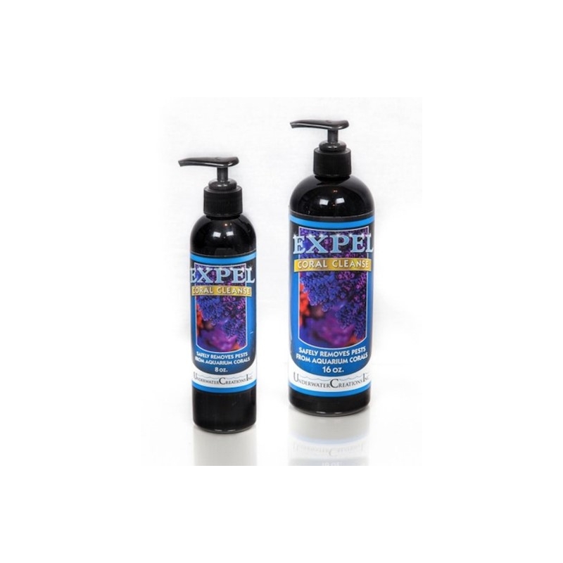 Expel es una revolucionaria limpieza de corales. Expulsar limpiará sus corales de esas plagas no deseadas. Expel es 100% seguro para todos los animales marinos, incluidos los corales SPS más sensibles, los corales LPS, los corales blandos, las almejas, etc.