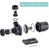 La bomba de agua hygger DC puede funcionar externamente o sumergida. Tenga en cuenta que el controlador no es resistente al agua, por lo que debe colocarse en interiores. La bomba de estanque viene con tornillos, juntas tóricas y accesorios de conexión de tuberías. Puede conectar tuberías de 1" o 3/4" a esta bomba de estanque.