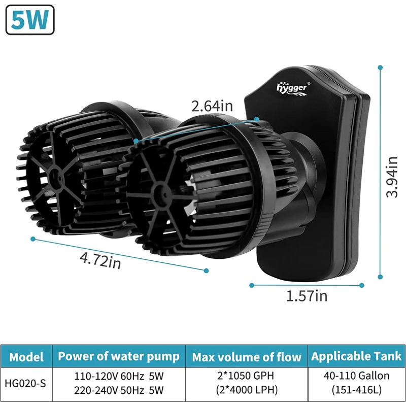 La bomba de circulación Hygger es fácil de ajustar con una pelota de béisbol giratoria de 360°. Como bomba de motor a prueba de agua, tiene una gran potencia y ahorra energía, y el impulsor del eje de acero inoxidable es duradero. La cubierta frontal tiene una ranura para tarjetas inversa en el interior y una carcasa protectora en el exterior, que es anti-pellizco. Pero debe usarse en tanques de menos de 0.47 pulgadas de grosor.