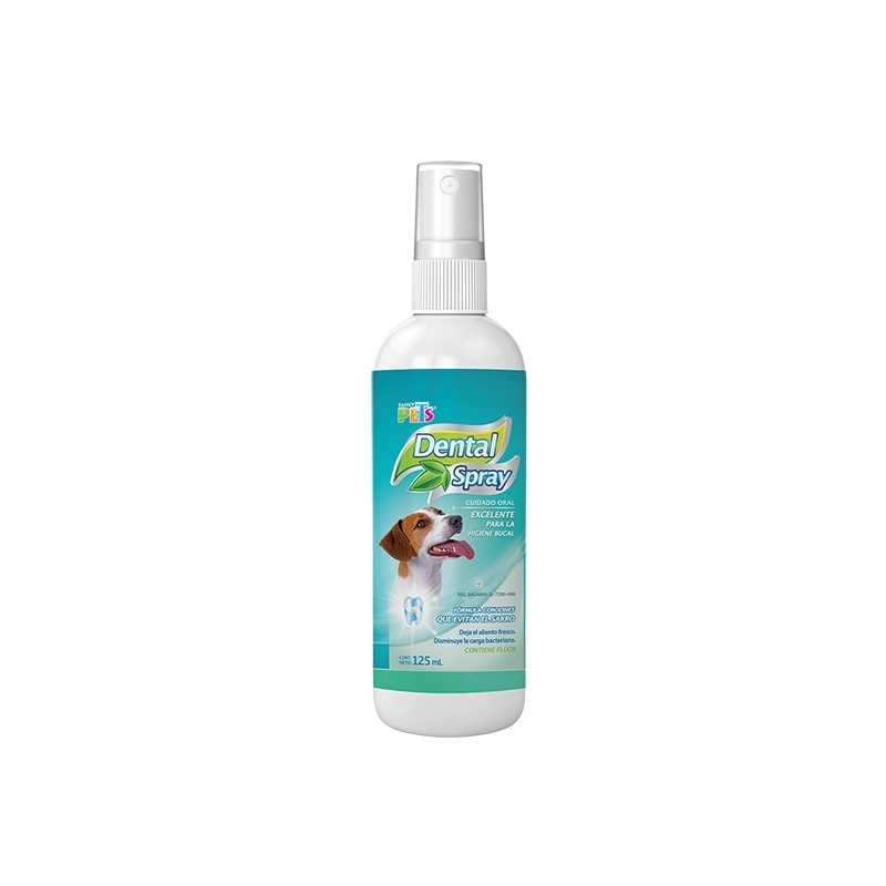 Spray dental para el cuidado diario de dientes y encías en mascotas que no toleran la limpieza directa. Ayuda a prevenir sarro y placa, y a mantener el aliento fresco.