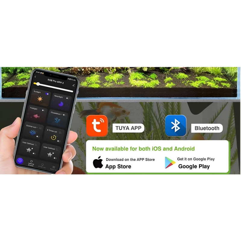 Puedes elegir la duración de la iluminación y la luz automatizará la iluminación de tu acuario sin intervención. Olvídate de preocuparte por tu acuario cuando viajes, estés ocupado con el trabajo o durmiendo. Además, las luces LED Bluetooth cuentan con una función de memoria de apagado que restaura la escena anterior en una hora.