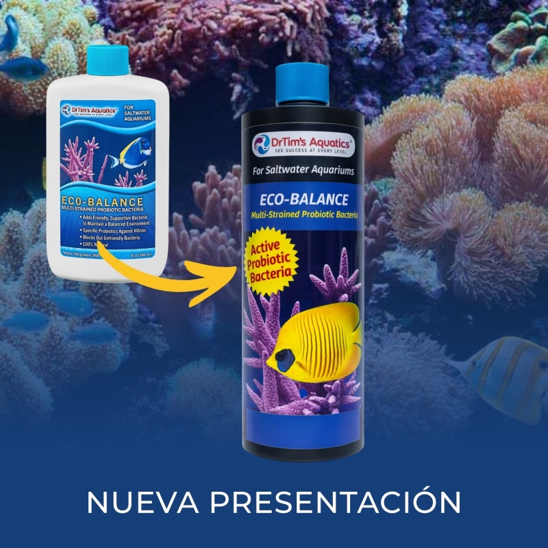 Eco-Balance es una solución probiótica compuesta por múltiples cepas de bacterias 100% naturales, diseñada para promover y mantener la salud integral del ecosistema en el acuario. Su formulación está orientada a restablecer el equilibrio biológico que se pierde de manera natural con el tiempo, optimizando la calidad del agua y fortaleciendo el entorno contra agentes adversos.