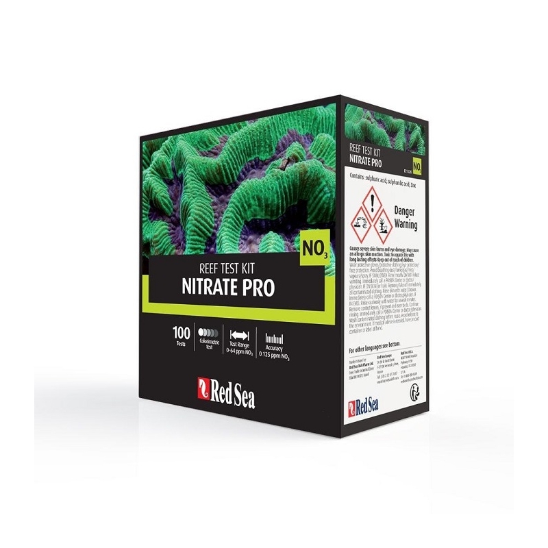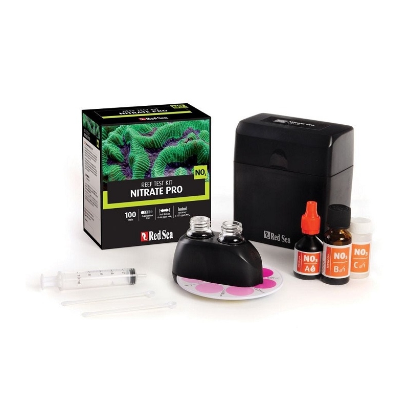 El kit de prueba Nitrate Pro de Red Sea es una prueba colorimétrica avanzada con comparador, que mide el nivel de nitrato en su acuario de arrecife con una precisión excepcionalmente alta de 0.12ppm NO3.