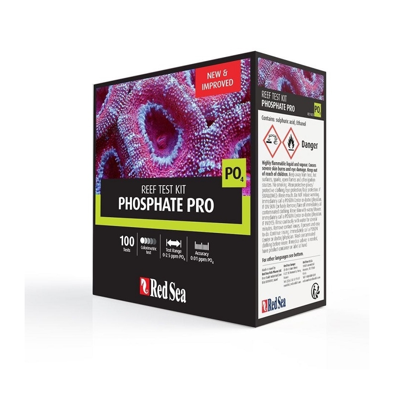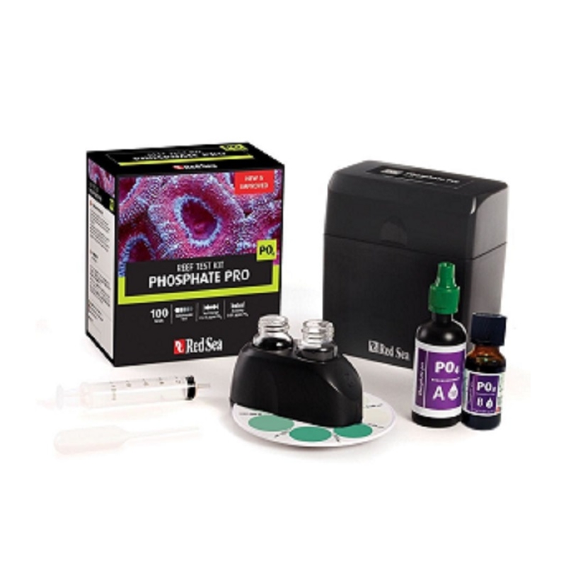 El kit de prueba de fosfato Pro de Red Sea es una prueba colorimétrica avanzada con comparador, que mide el nivel de fosfato en su acuario de arrecife con una precisión excepcionalmente alta de 0.02ppm PO4.