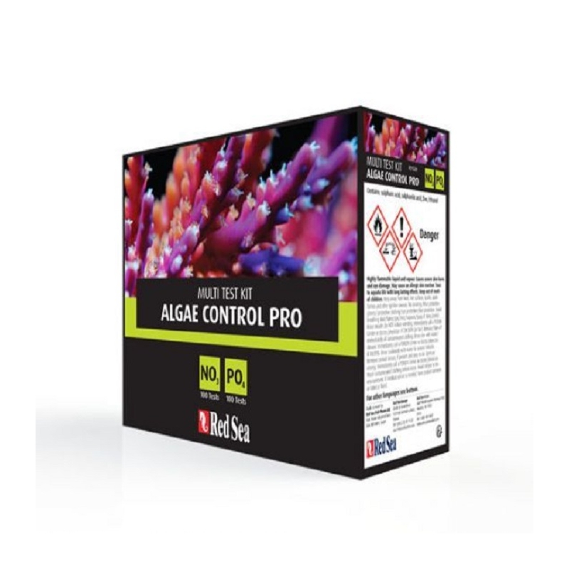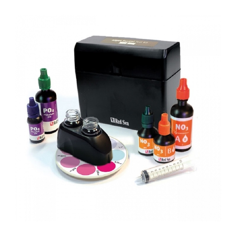 El kit de control de algas de Red Sea incluye pruebas de comparación colorimétrica de alta precisión para la medición de nitrato y fosfato con una precisión excepcionalmente alta.