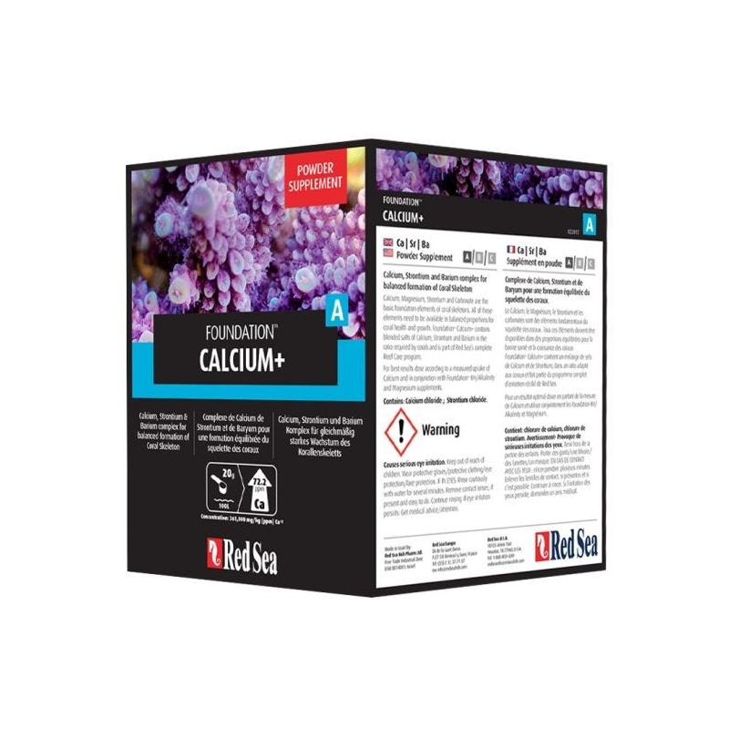 Reef Foundation A de Red Sea contiene sales mezcladas de calcio y estroncio en la proporción requerida por los corales y es parte del programa completo Reef Care Program de Red Sea.
