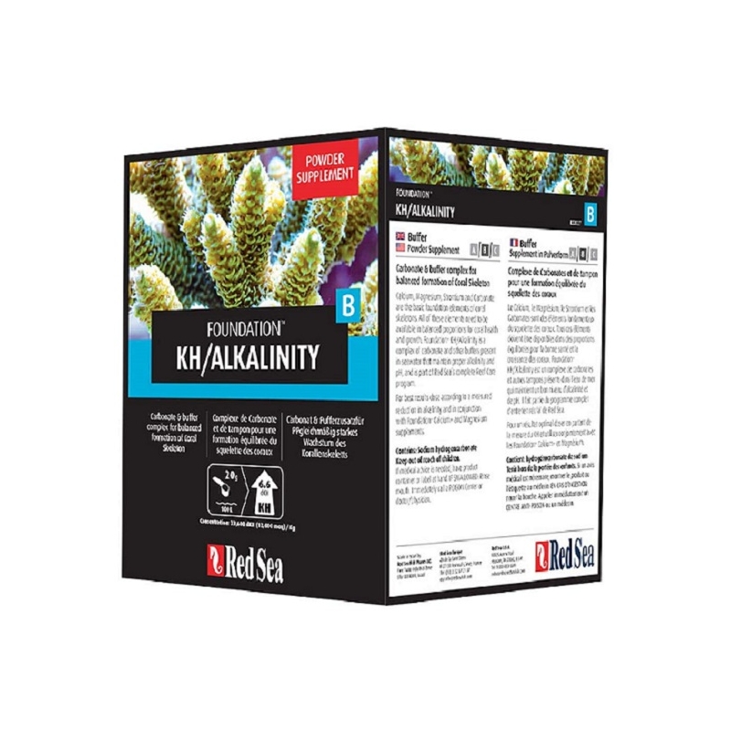 Reef Foundation B de Red Sea es un complejo de carbonato y otros amortiguadores presentes en el agua de mar que mantienen la alcalinidad y el pH adecuados, y forma parte del programa completo Reef Care de Red Sea.