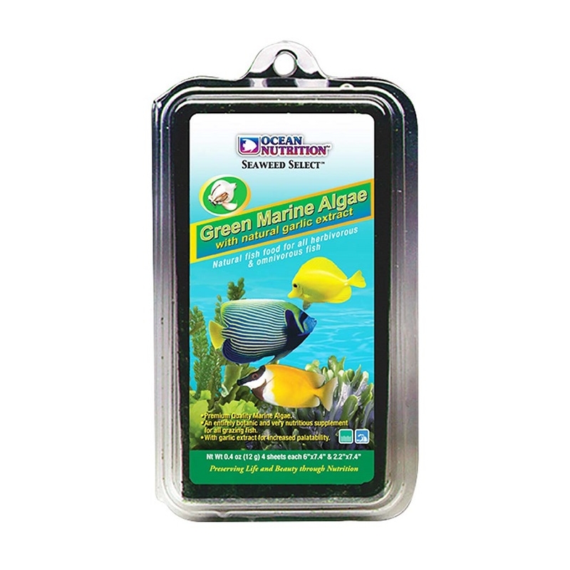 Algas marinas selectas Son alimentos naturales ricos en vitaminas y minerales que son ideales para la alimentación diaria de peces herbívoros, aquellos cuya dieta natural es parcial o totalmente algas. La adición de extracto de ajo crea un sabor atractivo que atrae incluso a los comedores más quisquillosos. Además, los Seaweed Selects son 100% digeribles, por lo que su pescado absorbe una cantidad máxima de la comida y excreta menos como desecho. ¡Esto significa menos limpieza del acuario para ti! Para una nutrición equilibrada completa, recomendamos encarecidamente alimentar a Seaweed Selects en combinación con Ocean Nutrition Formula Foods.