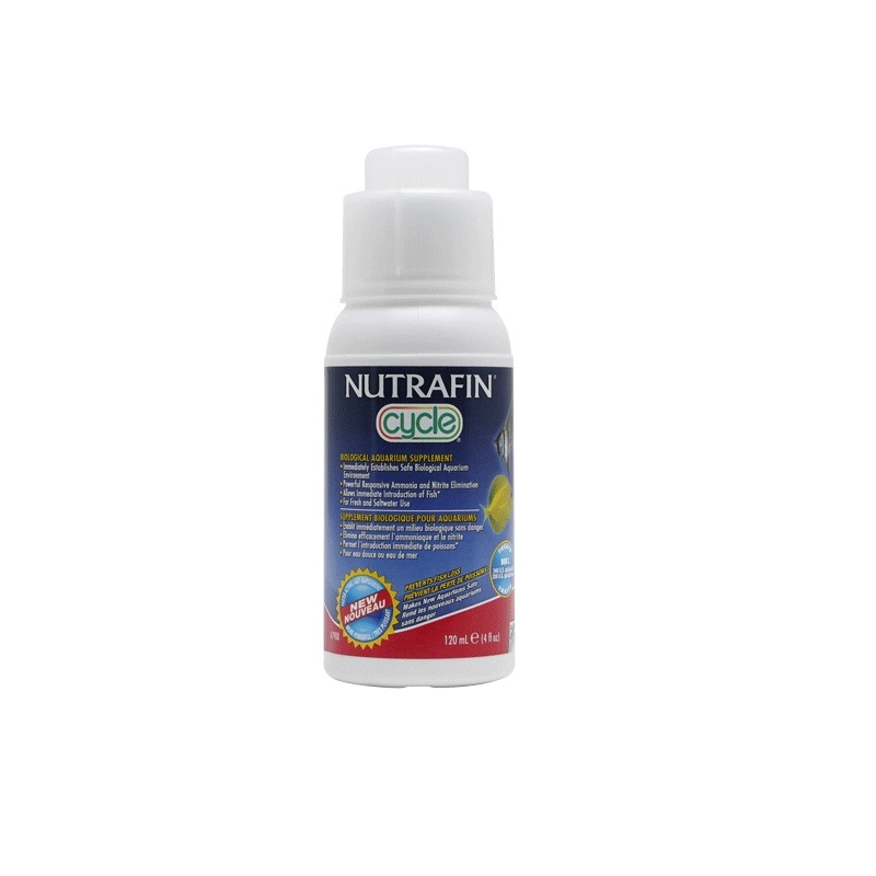 Suplemento biológico para acuario: Nutrafin Cycle es un suplemento biológico eficaz para acuarios que garantiza que todos los acuarios se inoculen inmediatamente con una poderosa cepa bacteriana beneficiosa, para brindarle un hábitat biológico seguro a al pez. Estos microorganismos sumamente eficaces crearán una flora biológica que metaboliza rápidamente el amoníaco y los nitritos mortales. Se recomienda fervientemente el uso de Nutrafin Cycle en los acuarios nuevos, ya que estos no contienen las concentraciones de bacterias beneficiosas necesarias para metabolizar los desperdicios que producen los peces.