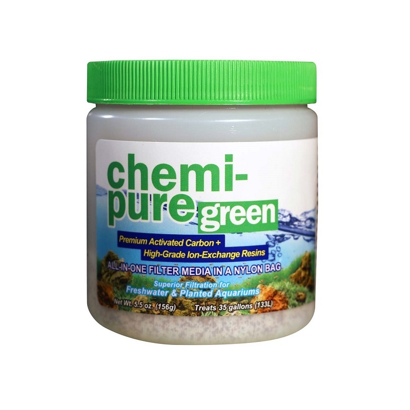 Chemi-pure Green es el mejor medio de filtración todo en uno para acuarios plantados de agua dulce. Convenientemente empaquetado en una bolsa de nailon fácil de usar. Chemi-pure Green está formulado para ofrecer una filtración superior sin eliminar ni micro ni macro nutrientes. Chemi-pure Green combina el más alto grado de carbón activado granulado con bajo contenido de polvo con resinas de intercambio iónico de primera calidad para producir una fórmula equilibrada optimizada para la salud y el bienestar de sus plantas al tiempo que proporciona agua cristalina. La fórmula patentada reduce significativamente los taninos, los olores, las toxinas, los compuestos orgánicos y los medicamentos. Para un acuario plantado sano, estable y cristalino, use Chemi-pure Green!