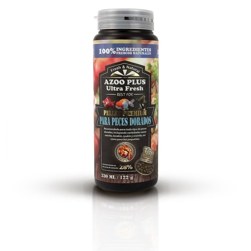 Ultra Fresh: Pellet premium para peces dorados es un alimento a base de pellets flotantes medianos recomendado para todo tipo de peces dorados, incluyendo variedades como ranchu, tosakin, ryukin y oranda, así como para pequeños peces koi.