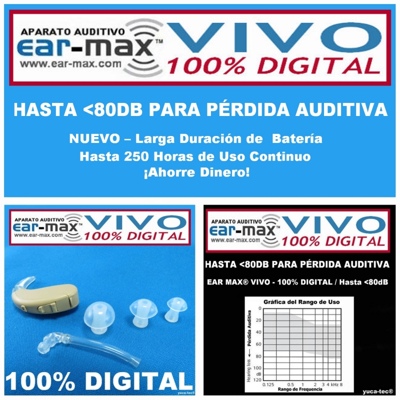 Ear Max® VIVO - 100% DIGITAL - Aparato Auditivo Auxiliar – Estilo Curveta Incluye: