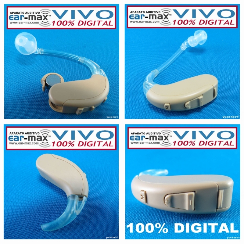 Ear Max® VIVO - 100% DIGITAL - Aparato Auditivo Auxiliar – Estilo Curveta de alta calidad es uno de los auditivos con mejor precio en el mercado y está diseñado para pérdida auditiva moderada a severa. Ear Max® VIVO - 100% DIGITAL - Aparato Auditivo Auxiliar – Estilo Curveta tiene un microprocesador digital que hace la voz y sonido claro y fuerte, también reduce el sonido de fondo permitiéndole escuchar más fácil. El microprocesador procesa el sonido a un 90% más rápido que los modelos analógicos tradicionales separando el sonido digitalizado en bandas. El microprocesador se activa automáticamente para producir un sonido claro y no distorsionado. Esto también proporciona una mejor precisión y percepción de sonido. Una vez ajustado el nivel de volumen ideal para usted la memoria del dispositivo la guardará para un uso a futuro.