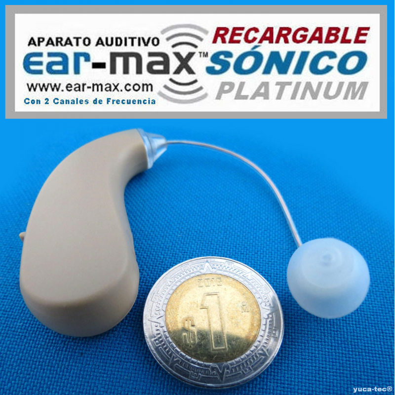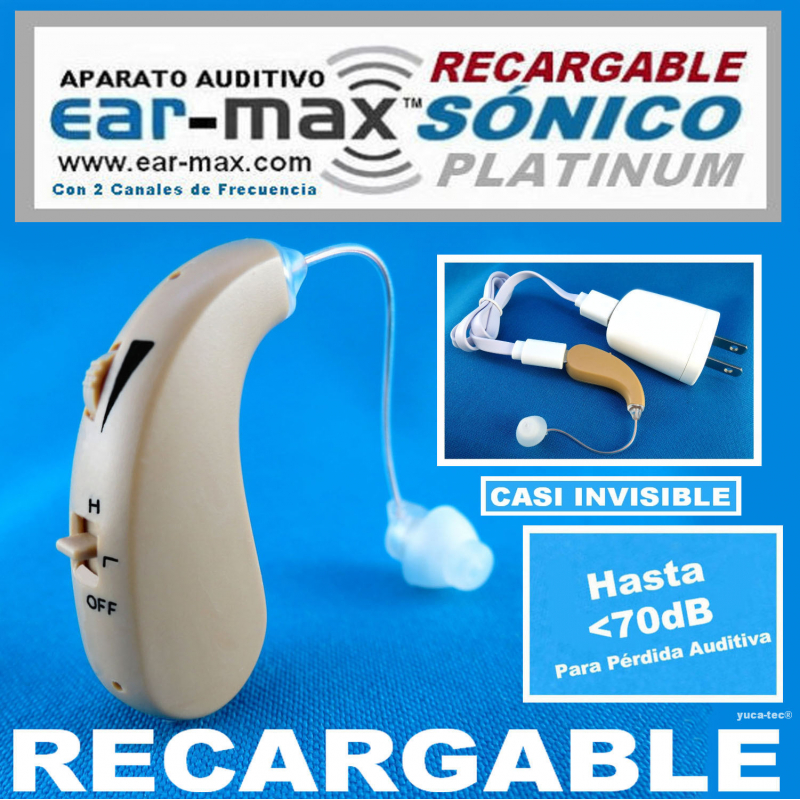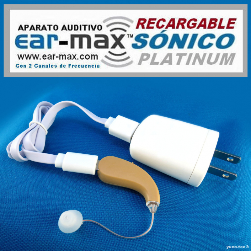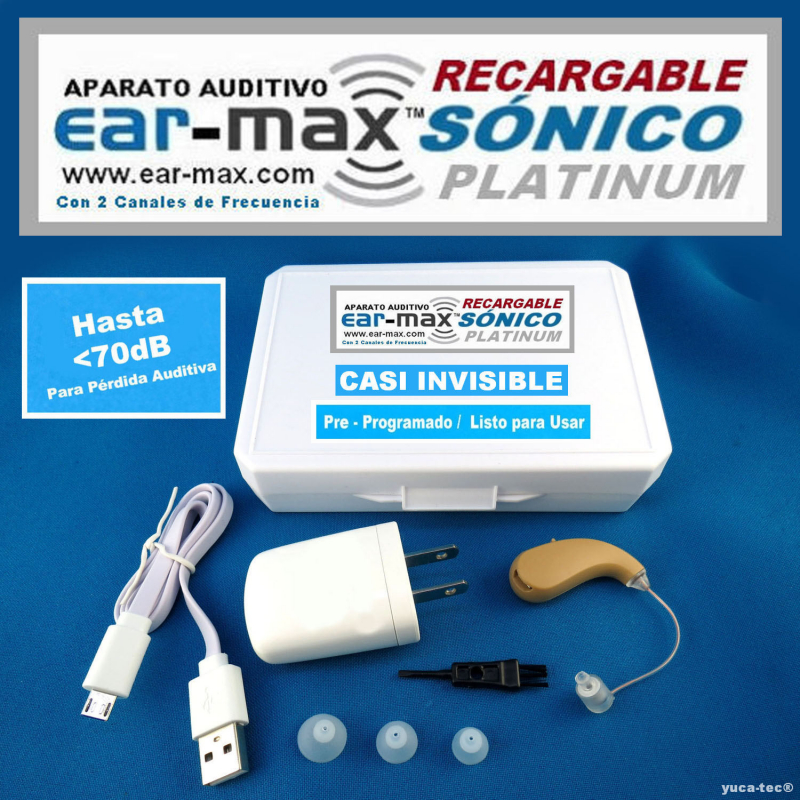 Aparato Auditivo EAR-MAX® SÓNICO PLATINUM RECARGABLE - Estilo Curveta Con 2 Canales de Frecuencia Incluye: