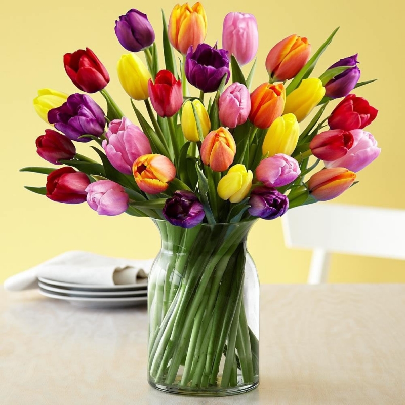 20 Alegres tulipanes para toda ocasion. Recomendamos los tulipanes ya que son de las pocas flores que siguen creciendo despuès de su corte y tiene una excelente duraciòn en lugares frescos.