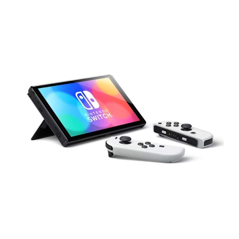 Introducing the latest console to join the Nintendo Switch family The new console features a vibrant OLED display with a wide adjustable stand, a dock with a LAN port for wired connection, 64GB internal storage and enhanced audio. With white Joy-Con controls, black console and a white base. Game at home on your TV or on the go with a vibrant 7-inch (17.78 cm) OLED display with the Nintendo Switch console – OLED model. In addition to the screen, which offers bright colors and sharp contrasts, the Nintendo Switch - OLED model includes 64 GB of internal storage, a base with a LAN port for wired connection to play on TV, a wide adjustable stand and audio improved. Feast your eyes on bright colors and sharp contrasts when gaming on the go. See what a difference a vibrating display makes when you're racing at full throttle or battling your enemies