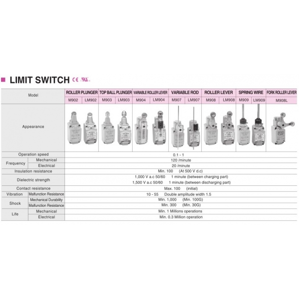Limit Switch con Embolo de Rodillo Contacto 1NA+1NC 6amp HANYOUNG