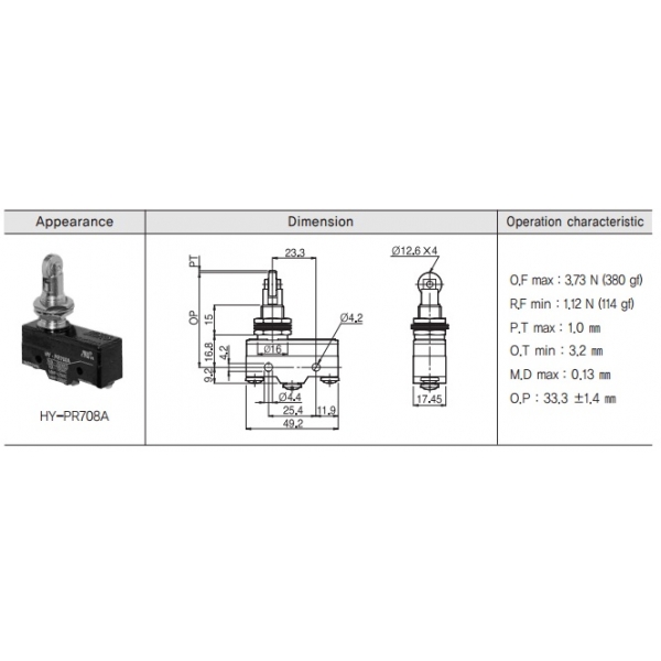 Micro switch basico pivote y rodillo cruz 10 A 250V HANYOUNG
