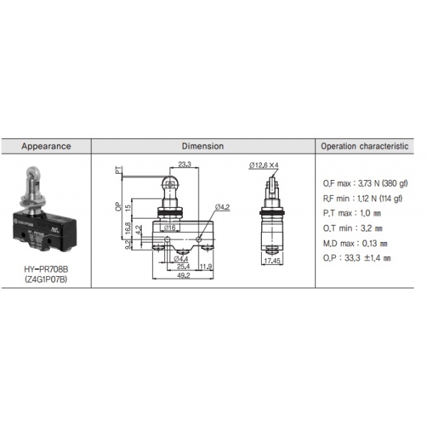 Micro Switch básico con pivote y rodillo paralelo 1NA+1NC 10amp 250vca HANYOUNG