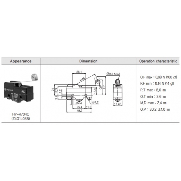Micro Switch básico con palanca larga y rodillo 1NA+1NC 10amp 250vca HANYOUNG