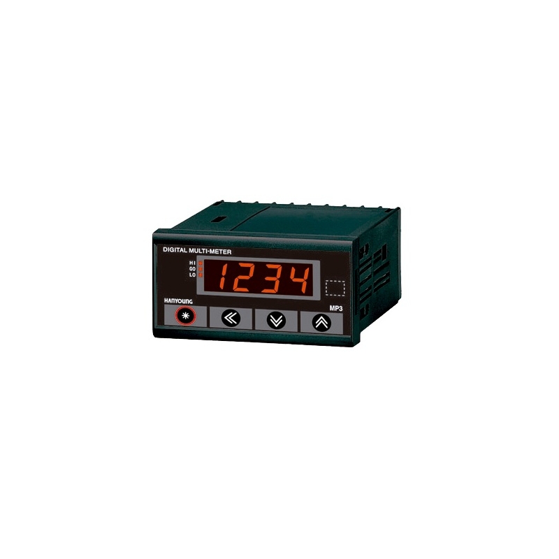 Amperímetro Indicador DC 4digitos 96x48mm rango 5mA, 20mA, 4-20mA, 50mA, 500mA y 5A, alim. de 100/240vca(MP34DANA) HANYOUNG