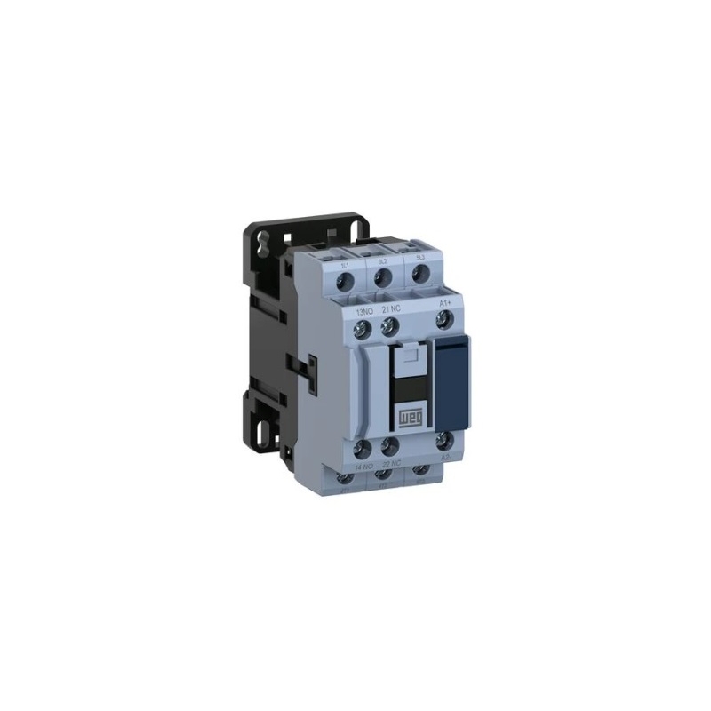Contactor magnético 3F 18A 5Hp/220vca 12.5Hp/440v 1NA+1NC bobina 220vca p/riel din WEG
