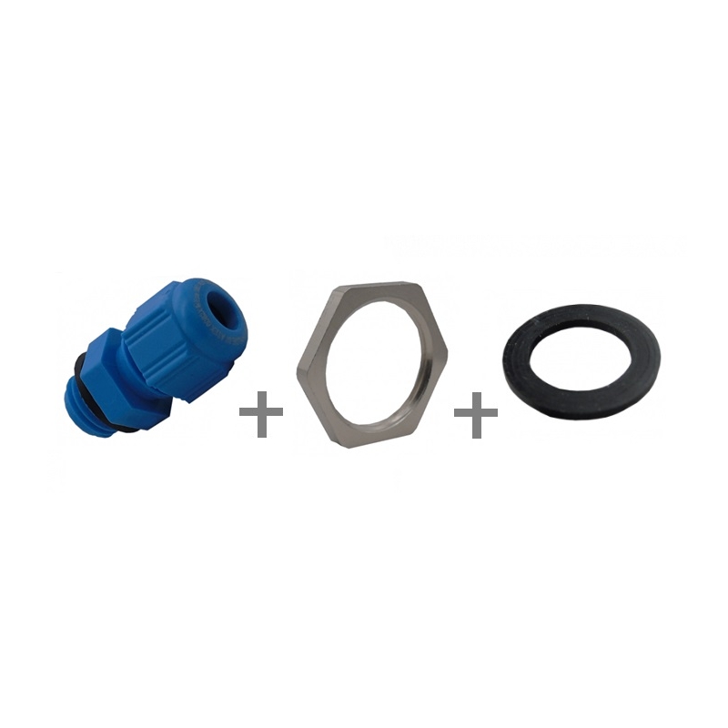 Conector glándula A.P.E. poliamida 6 azul 120 a 60°C IP68 capacidad de ajuste 2.5-8mm M16X1.5 incluye contratuerca y sello plano ALTECH