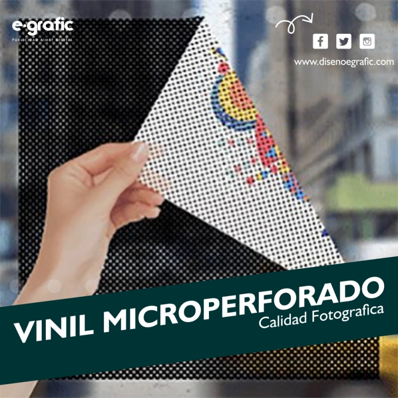 El microperforado es una gran opcion para ventanas sinsacrificar la visibilidad exterior, con una calidad de impresion para que pueda ser visible a cercana y lejana distancia