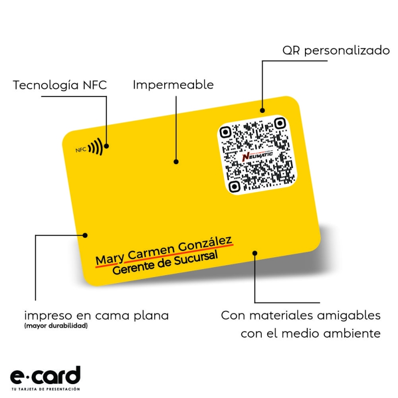 Tarjeta Digital con tecnología NFCEspecificaciones
